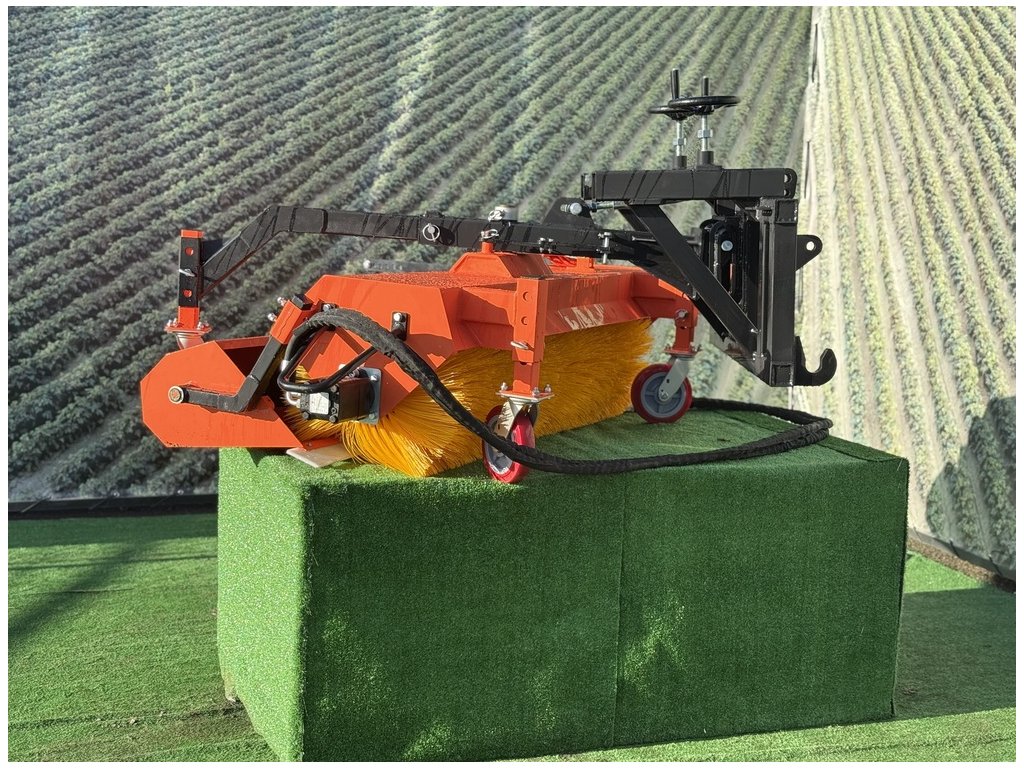 Kartáč se připojuje k traktoru přes tříbodový závěs Kat-I - Kat II a je poháněn vývodovou hřídelí (PTO), což zajišťuje spolehlivý a silný výkon bez nutnosti externího motoru.
